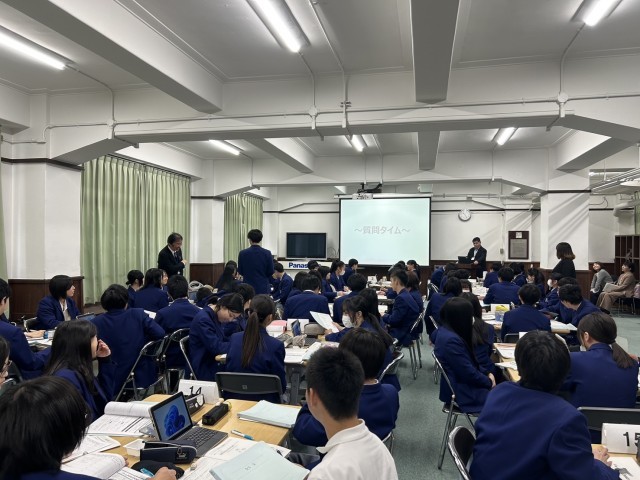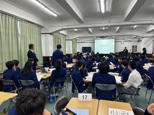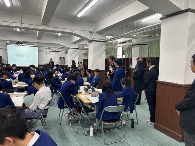 生徒のみんなは、求職者(就職活動をする学生)となり、午前は「業務の実践体験」として、関西電力の方から与えられた課題(JOBミッション)にグループで取り組み、企画書を作成して交流する活動を行いました。