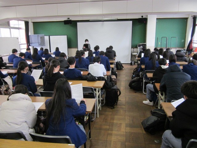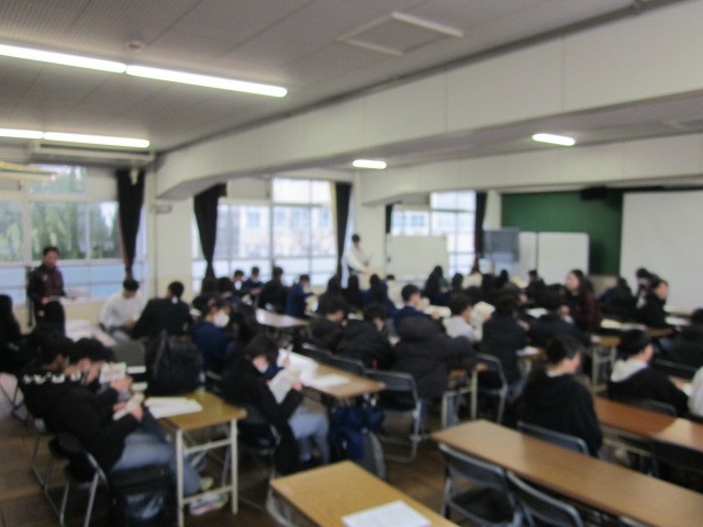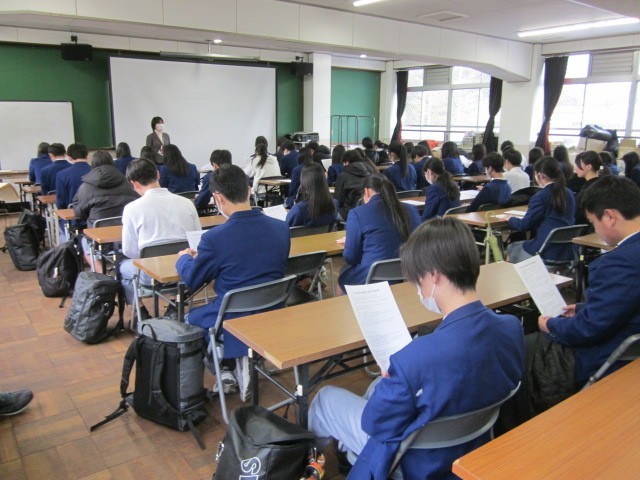 2月9日(月)6限に、3年生は10日(火)からはじまる私立高校入試に向けて前日指導を行いました。私立高校受験がある生徒全員が会議室に集まり、入試全般の注意と激励がありました。最初に校長先生から「1.緊張するものだと割り切って、これまでの努力を思い出しましょう。 2.不安は自信を奪うので、ポジティブな思考を保ち続けましょう。 3.自分を支えられるのは自分だけなので、必ず夢を叶えるんだという強い気持ちで挑戦しましょう。」という激励の言葉をいただきました。進路主事の先生からは「場所や交通手段、時間、受験番号等の確認をもう一度してください。万が一、忘れ物に気がついても取りに帰らず高校に向かい、絶対に遅刻しないでください。」等の注意がありました。その後、受験校ごとに分かれ、それぞれの高校担当の先生から諸注意について確認がありました。