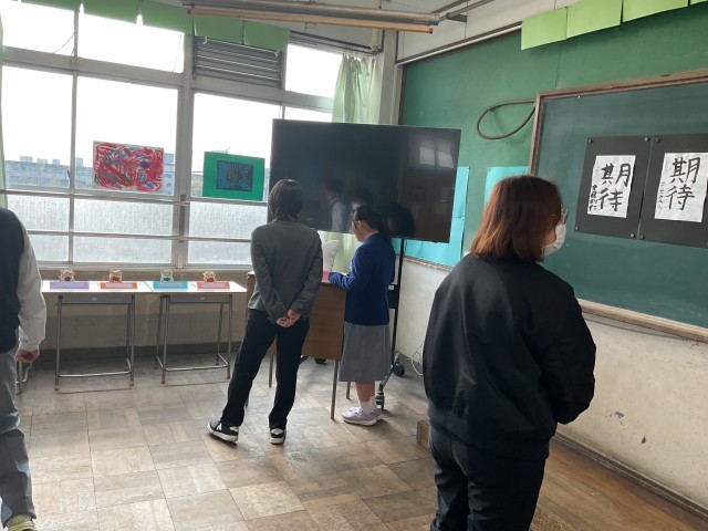 また、受付や案内係など役割分担も決めて、作品を見に来た先生たちの対応をしてくれました。