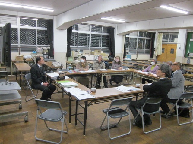 2月17日(火)18:30〜 第3回学校運営協議会を開催しました。学校運営協議会委員【地域代表として4名(新林学区、境谷学区)、PTA代表1名、教育関係者(府立洛西高校校長、京都成章高校校長の2名】の合計7名の方々に参加いただきました。