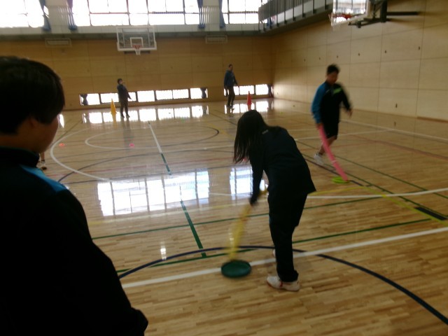 洛西陵明小中学校の体育館に、西京支部の育成学級が集まり、スポーツ交流で「フロアホッケー」に取り組みました。