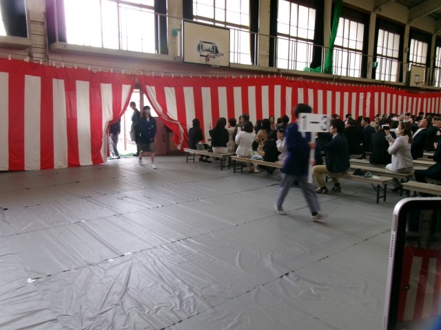 花便りも伝わる4月9日(木)午前10時より、令和8年度 第48回入学式を挙行しました。新入生は学級の確認し教室に集合した後、1年仮学級担当の先生から式の流れや今日の予定の確認を受け、定刻通り新入生は体育館に入場しました。各クラスのプラカードを掲げる生徒会本部役員生徒に続き入場する新入生の姿は、中学生らしく胸を張って、とても凛々しく見えました。入学式は国歌、校歌斉唱を行って、落ち着いた雰囲気の中で始まりました。