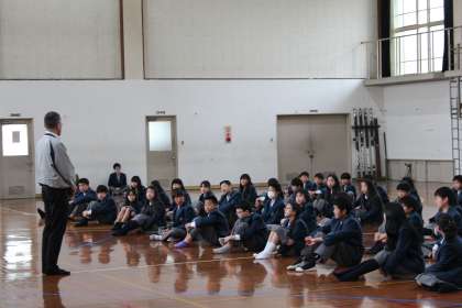 本日の1限に,1年生は学年集会を行いました。1年生の教職員一人一人の自己紹介があり,そのあと学習面や生活面において心がけてほしいこと,学年として「共に学び,互いを認め合い,協力し合える学年」を目指そうという話をしました。71名の仲間と共にいい学年を作りましょう。