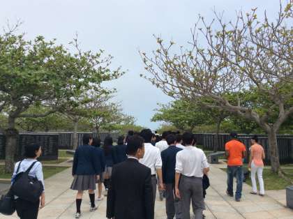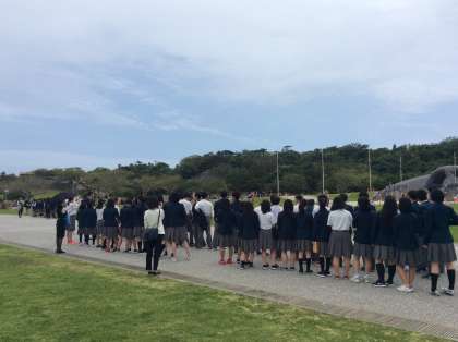 バスで平和祈念公園に到着し,公園内を見学しています。