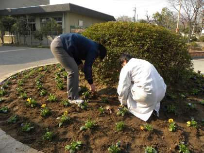 2月4日(金)に4組の生活の時間、円形花壇に沢山のパンジーを花壇の円形沿って丁寧に生徒と担任の先生が植えてくれました。これだけの多くのパンジーが満開になると見る者の心が癒されるのではないかと思います。
