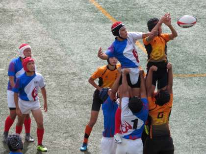 本日,夏季選手権大会の決勝トーナメント準々決勝が宝ヶ池公園球技場で行われました。前半からトライを積み重ね,後半も,本校の力を十分発揮し72−0で見事,修学院中に勝利しました。応援ありがとうございました。