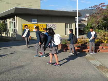 11月2日(金)に行われる生徒会本部役員選挙の立候補者が出そろい,本日より選挙活動が始まりました。登校してくる子どもたちにアピールをしてくれました。一日目で緊張してあまり声が出せなかった候補者もいました。明日からも自分の思いをしっかり伝えてほしいと思います。