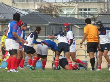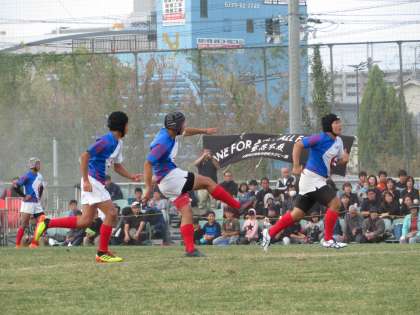 後半が始まりトライとゴールを奪われ7−19でリードを許しました。ここから西陵の反撃です。トライを立て続けに3本奪い一時はリードしましたが,大接戦の末22−24で力及びませんでした。