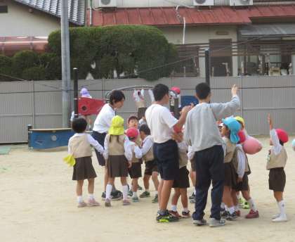 チャレンジ体験,大原野幼稚園の様子です。園児といっしょに楽しく走り回って,昔を懐かしんでいるようでした。