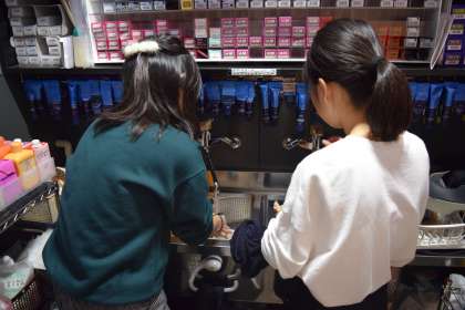 本日最終日となるYAYOI BRAINSの様子です。一生懸命洗っている姿です。店内は大忙しで,店員さんの指示をよく聞いて動いていました。4日間お疲れ様でした。