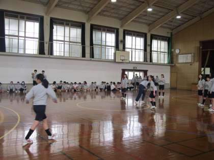 本日の3,4限に3年生は球技大会がありました。グランドでハンドボールをする予定でしたが,昨夜からの雨の影響でグランドの状態が良くなかったため,体育館でドッヂボールをしました。クラス対抗で行い,2組が優勝しました。どのクラスも白熱した試合を見せてくれました。