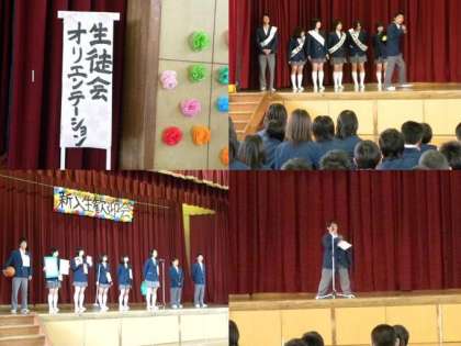 「新入生生歓迎会」のあと生徒会本部が1年生に生徒会とはどういったものかを劇を交えてわかりやすく説明してくれました。新学期が始まって間もない中をセリフを覚える時間がなかなか取れなかったと思いますが、よく頑張ってくれました。内容もよくわかりやすいものでした。生徒会のヤル気を垣間見たオリエンテーションでした。