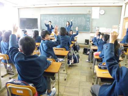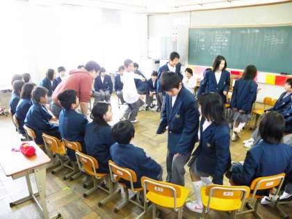 1年生の2つのクラスではレクレーション活動をしていたり学級目標を考えていたりと多様でした。新しい学級のはじまりなのでどちらも大切なことです。クラスの友達と仲良くなって、自分の考えや意見を出しあうことができる雰囲気を早くつくりだして1年間保ってほしいと思います。