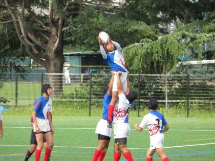 本日,選手権大会の決勝トーナメント準々決勝が吉祥院グランドで行われました。序盤からたて続けに3本のトライを奪いリードしましたが,前半間際から後半にかけて相手の攻撃にあい,懸命のディフェンス。終了間際にトライを奪い24−12で,七条中学校に勝利しました。応援ありがとうございました。