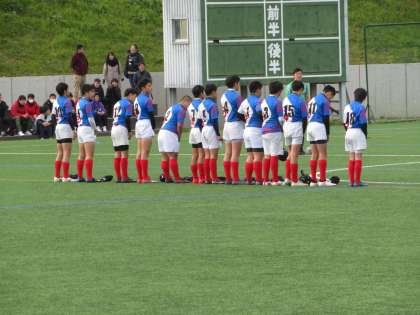 本日,新チームになってからの初めての公式戦です。試合開始直後から堅さもなくパワー全開でトライを積み重ね,後半になっても攻撃の手を緩めることもなく攻め続け,113−0で音羽中学校に圧勝しました。随所に練習の成果を発揮して,素晴らしいプレーが見られました。新チームとして,一戦一戦,今後の成長と健闘を期待しています。