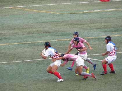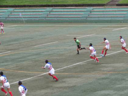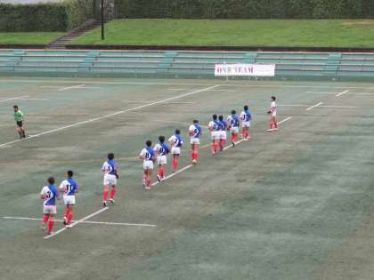 本日,選手権大会の決勝トーナメント準々決勝が宝ヶ池球技場で行われました。序盤から4本のトライを奪いゴールも決め,前半を28−0で折り返しました。後半も攻め続けトライを重ねましたが,相手の攻めにもあい2本トライを奪われました。結果は61−12で勝利し準決勝進出を決めました。攻撃のいいところと次戦の課題も見えた試合でした。