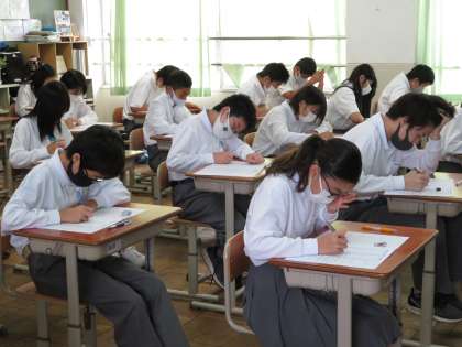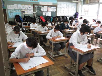 今日から第2回定期テストがはじまりました。1年生は数学。2年生は英語。3年生は理科からのスタートです。子どもたちは最後まで集中してテストに取り組んでいました。明日もテストは続きます。家庭学習をしっかり行い,テストに備えてください。