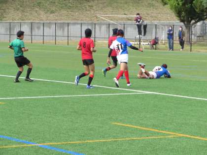 その後も攻め続け終了間際にもトライを奪い,47−0で見事優勝しました。おめでとう。制限があり,思うように練習ができない日々でしたが,よく頑張りました。