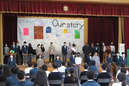 3年学年劇「Our Story」です。1,2年のときから西陵祭 文化の部で劇を披露し,最高学年の集大成として,学年の思いを込めた,一致団結した発表でした。