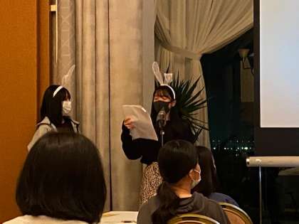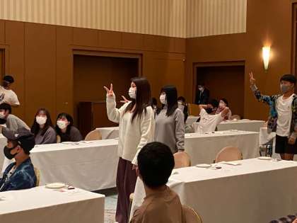 夕食と同じ会場に集まり,学年レクリエーションが始まりました。本日最後のイベントです。学年みんなで楽しみ,学年の団結力を深め,明日の修学旅行2日目につなげます。