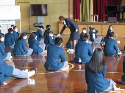 本日,3年生は薬物乱用防止教室を実施しました。京都市学校薬剤師会より講師の先生をお招きし講演をしていただきました。先生からは,薬物についての基礎知識,海外での現状を動画で見せていただいたり,薬物は人間の心のスキマに入ってくること,一度きりの人生,自分を大事にしてください,など大変熱意をもって伝えていただきました。