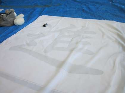 写真の評議員は,西陵祭スローガン旗作成に取り組んでいます。