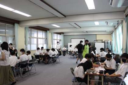 「より良い学校づくり」を目指して,リーダーズプロジェクトを行いました。生徒会本部役員と評議員・志をもって参加する生徒合計27名が参加しました。心の距離を縮めるアイスブレイキング・話し合い活動・話し合った内容の発表を行いました。話し合い活動では,グループ内で同じテーマを学年をこえて意見を出し合いました。この経験が今後の学校生活にも反映してくることと思います。周りの人の役にたちながら,自分も成長していく姿が素敵です。参加した皆さんの今後の活躍を期待しています。