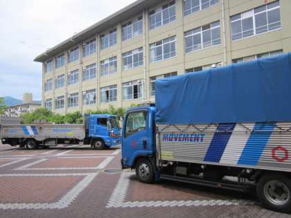 修学旅行だよりの合間ですが掲載します。福西小学校と竹の里小学校の1次統合に伴い,本日たくさんの物品が本校に搬入されました。重量物品にもかかわらず,物品を傷つけず,かつ怪我や事故のないように注意・指示しながら搬入されていました。京都市でも中学生が職場体験事業をしています。ぜひ身近に社会で働く皆さんの心意気を中学生にも学んで欲しいと思います。