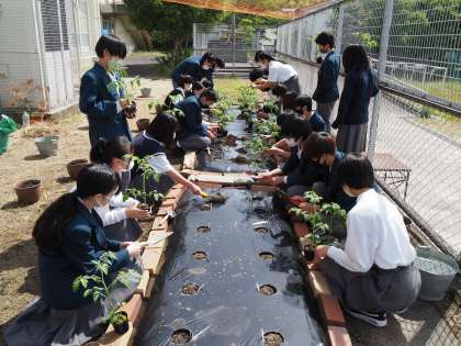 技術科でミニトマトの苗を畑に移植してから約3週間が経ちました。今日の畑の様子を撮影しました。丈も大きくなっています。愛情を注げば,当然愛着がわきますね。成長が楽しみです。大事に育ててください。(最下段は約3週間前の画像です)