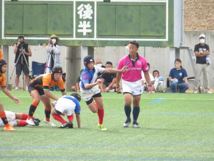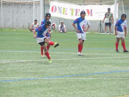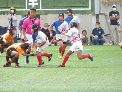 ラグビーの選手権大会が吉祥院グランドで開幕しました。本日,予選リーグの初戦で修学院中学校との対戦です。前半から相手のペースで試合が進みました。ハーフタイムで,キャプテンからチームメートに声をだして,やるべきことをしっかりやろうと話がありました。後半に入り,最後まであきらめないタックと大きな声が響きわたりましたが,力及びませんでした。来週は定期テスト中ですが,限られた時間で調整し,決勝トーナメント1回戦での活躍を期待しています。