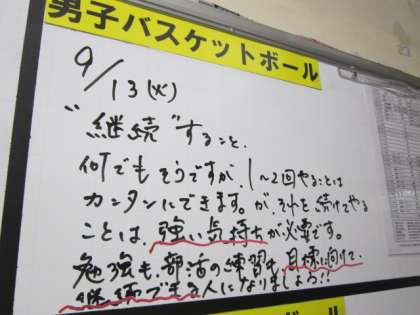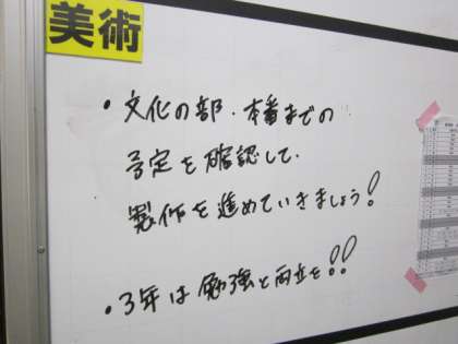 本日も放課後学習会が行われました。部活動顧問からも定期テストに向けてのメッセージが記されています。仲間も一生懸命努力しています。お互いが切磋琢磨できる集団でありたいですね。顧問も応援しています。誘惑に負けないように!いい準備をしてください。