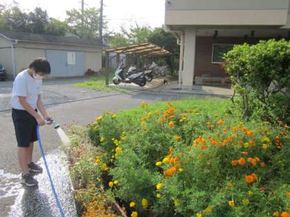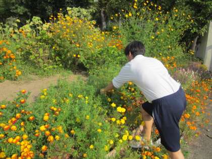 おはようございます。今朝も環境委員が花の手入れを行っています。委員長は、朝食に白ごはんと味噌汁を食べてきたそうです。「朝食を抜くことはない」と答えてくれました。1日の消費エネルギーの約2割は脳を使うことによって消費されます。食べないと頭も働きません。しっかり食べて充実した1日を過ごしてください。10月分の給食web予約システム(クレジットカード支払い)は本日が締切です。