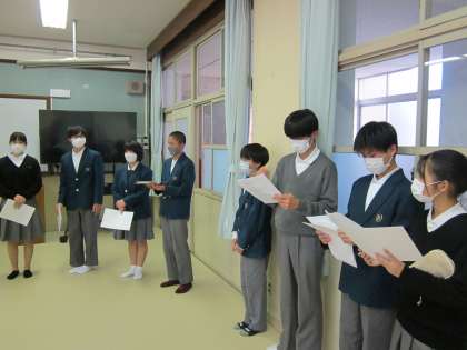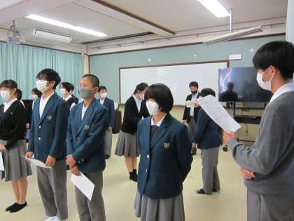 生徒の皆さん、取組にはこうした事前準備がなされていることを理解してください。事前に一生懸命取り組んでいる仲間の存在を感じ取ることができるでしょうか?心のやさしい人へと育ってください。