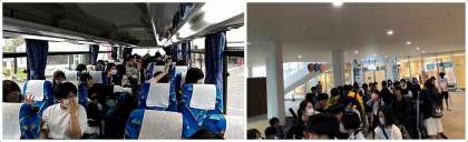 お世話になりましたホテルの皆様へ手を振ってとお別れし、本日の目的地宮島へ向けて出発しました。現在の天候は少し悪いですが、昼からは良くなっていく予報が出ています。