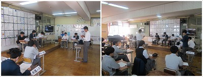 3年生の社会科で「模擬裁判」の授業がありました。裁判官はもちろん、検察官、弁護人もすべて生徒で実演しました。証拠品はGIGA端末を使って提示されるなど、充実した内容でした。