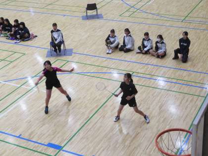 先週の個人戦に続き、本日は洛星中学校でバドミントン団体戦、予選を勝ち抜いた16校での戦いです。本校は1回戦で大谷中学校に2−0で勝利しました。続いて準々決勝では西賀茂中学校に接戦の末2−1で勝利しました。準決勝は0−2で蜂ヶ岡中学校に力及びませんでした。今もてる力を十分出しきった立派な戦いでした。春季大会に向けて、これからもいい準備を積み重ねていきましょう。
