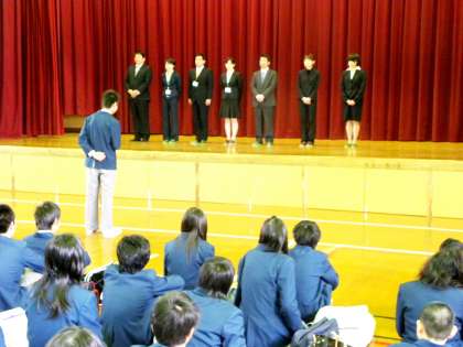 4月4日(水)に着任式と始業式を実施しました。着任式では新しく以下7名の先生方を迎えて一人ひとりを紹介しました。今年度から教頭先生になられた梅村先生から代表で挨拶がありました。生徒から代表で溝尻航太君が歓迎の言葉をしっかりと述べて迎い入れてくれました。新しい教員を含めてさらに飛躍する西陵中学校を教職員と生徒とでつくっていければと思います。