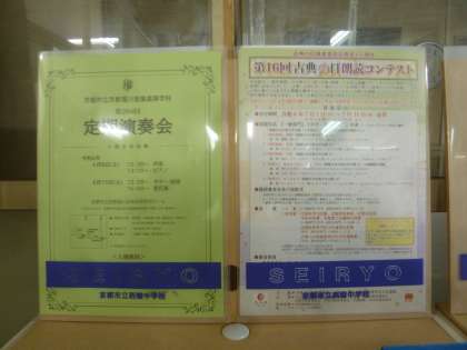 職員室前に様々な案内プリントを掲示しています。