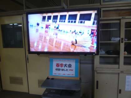 職員室前のモニターに映しています。