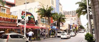 国際通り着。班別研修が始まりました。蒸し暑く、雨もポツポツ降り始めましたが、沖縄の最後を満喫してください。