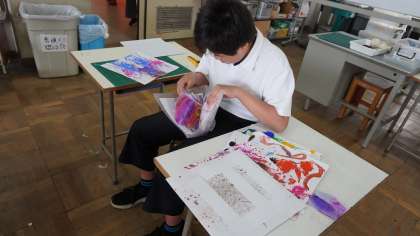 今まで作成した素材や習った技法を使ってコラージュ作品に取り組んでいました。
