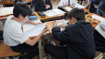 SDGsのそれぞれの課題に対して、自分たちにできることをグループで話し合っていました。