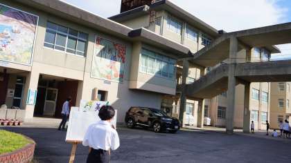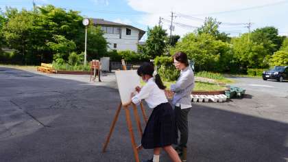 美術部の子たちが校舎の絵を描いています。