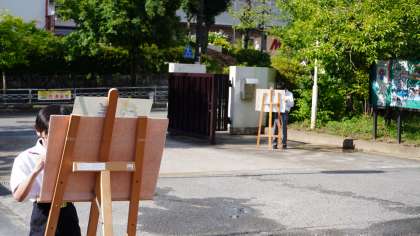 雨も上がり、放課後の様子を見てみると、美術部の子たちが校舎の絵を描いていました。