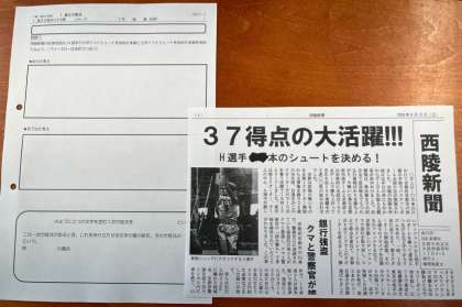 バスケットボールの試合の新聞記事から、