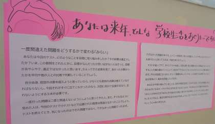 どのように学校生活を送るべきなのか。夏休みをどのように過ごすことが自分の目標に近づけるのか。英語のパフォーマンステストにどう臨めばよいのかと、子どもたちに考えさせる掲示が貼られています。