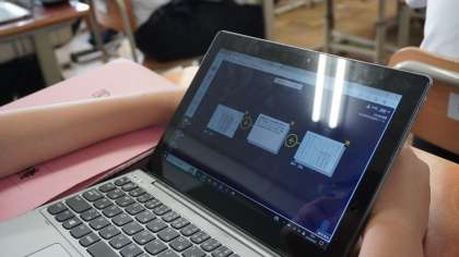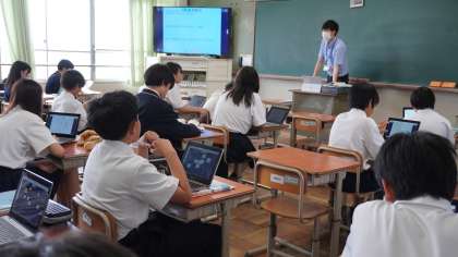 1年2組では国語の学習で決められた字数で自分の伝えたいことを説明するために考えていました。