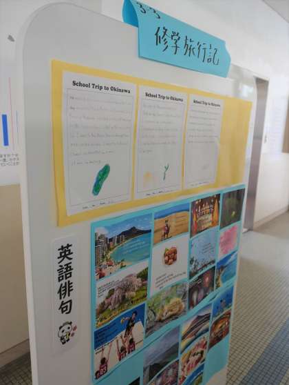 各フロアを歩いていると、それぞれの教科で作成したものが掲示されています。