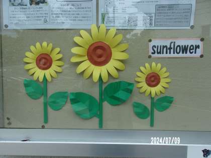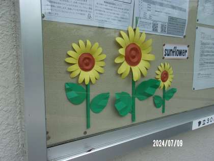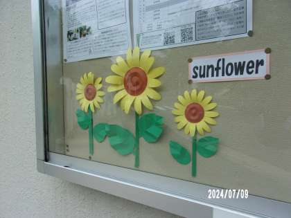 校門前にきれいな「向日葵(ひまわり)」が咲きました。
