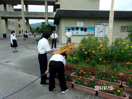 お花の水やりをしてくれています。